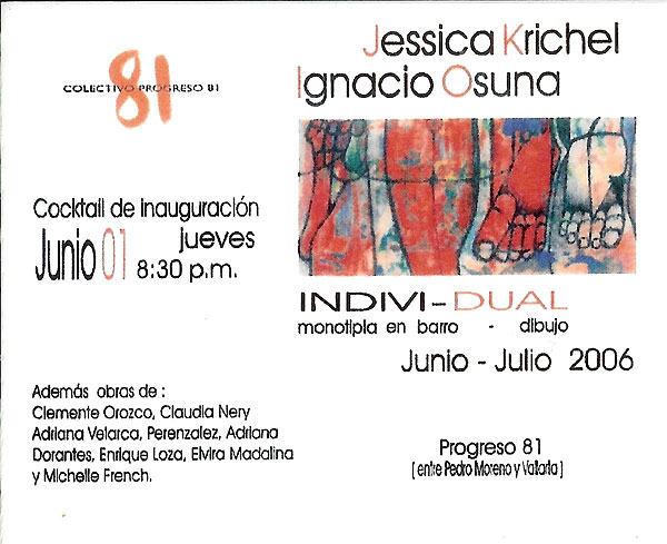 realiza su primera instalación titulada Nudos, Clemente Orozco, Claudia Nery, Adriana Velarca, Perenzalez, Enrique Loza, Elvira Madallna