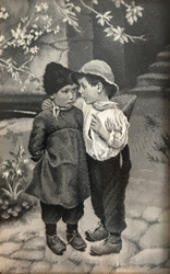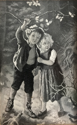 Le Secret Stevengraph o Textilograph (Postal de Seda) Diseño de Marie Wunsh 1916-1919 aprox. 6.5x10 cm.
