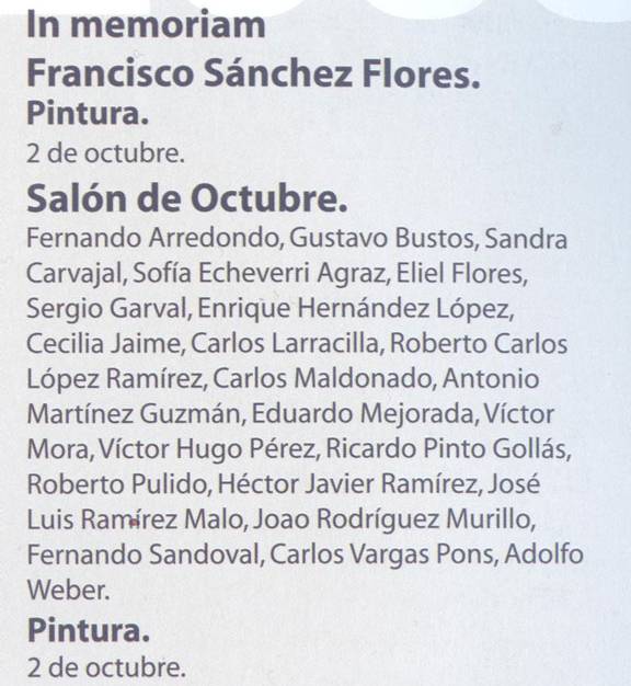 Fiestas de Octubre. Mañana a las 20:00 horas se inaugura en el Ex Convento del Carmen el Salón de Octubre que estará dedicado a Francisco Sánchez Flores Hace unos años, caminando por el centro de Guadalajara, Francisco Zurita reconoció un par de cuadros de Francisco Sánchez Flores, conocido por sus allegados como Pancho Panelas. Después de regatear un rato con el vendedor, Zurita consiguió hacerse de las piezas de Sánchez Flores, de quien aclara ser familiar, aunque se niega a revelar en qué grado. Sánchez Flores iba conmigo y cuando le confesó al vendedor que él era el autor de los cuadros, él le contestó de haber sabido se los hubiera vendido más caros, recordó entre risas Zurita, el coleccionista más leal de Pancho Panelas. La anécdota y el curioso sobrenombre no es lo único particular de este creador. Amigo de personalidades como el Dr. Atl y José Clemente Orozco, Sánchez Flores fue un hombre del renacimiento en pleno Siglo 20, ya que destacó como pintor, coreógrafo, escritor, investigador de las costumbres populares y político. Para rescatar la importancia de este multifacético personaje, el Festival Cultural de las Fiestas de Octubre le rinde un homenaje con la exposición titulada In Memoriam, que se inaugura mañana a las 20:00 horas en el Ex Convento del Carmen. La muestra integrada por pinturas, fotografías, libros y grabaciones pretende rememorar la relevancia de este intelectual, que nació en Tlajomulco en 1910 y murió en Guadalajara en 1989. La Niña del Caracol y A dos Pesos la Pasada, las dos piezas que Zurita compró en el Centro de Guadalajara, están incluidas en esta retrospectiva. La principal condición para organizar esta exposición fue que mostrara un panorama general de lo que es la obra de Francisco Sánchez Flores, desde sus escenas costumbristas hasta el paisaje jalisciense que le gustaba mucho pintar, explicó Migdelina Durazo, curadora de la exhibición. In Memoriam. Francisco Sánchez Flores estará acompañada del Salón de Octubre, la reunión de la obra de 23 jóvenes artistas plásticos elegidos por Durazo, que sirve de escaparate del trabajo que se realiza en Jalisco. A esta lista se le suman Beatriz Ortiz, Dan Montellano Herrera y Gerardo Iván Villaseñor, ganadores del Concurso Jóvenes Promesas de la Plástica Jalisciense, organizado por la Universidad de Guadalajara, quienes también están incluidos en el Salón que desde el año pasado retomó como propio el Festival, después de que la empresa Omnilife lo manejó por tres años. Zurita dice sentirse satisfecho de que se recuerde a Sánchez Flores en un marco rodeado de jóvenes. De alguna manera esta sangre nueva lo anima a pensar que sigue vivo el sueño más ambicioso de su pariente: convertir el extenso rancho que la familia aún tiene en Pihuamo, en una ciudad de las artes donde los creadores ancianos puedan retirarse a disfrutar de sus últimos días. In Memoriam. Francisco Sánchez Flores y el Salón de Octubre se podrán visitar hasta el 31 de este mes en el Ex Convento del Carmen ubicado en Juárez 638. EN HOMENAJE La exposición In Memoriam. Francisco Sánchez Flores está integrada por: 20 piezas de obra plástica realizadas por el homenajeado 1 busto realizado por Rafael Zamarripa 3 grabaciones 5 libros publicados 22 fotografías que abarcan desde la época de estudiante del personaje y que incluyen imágenes con el Dr. Atl. mural.com |