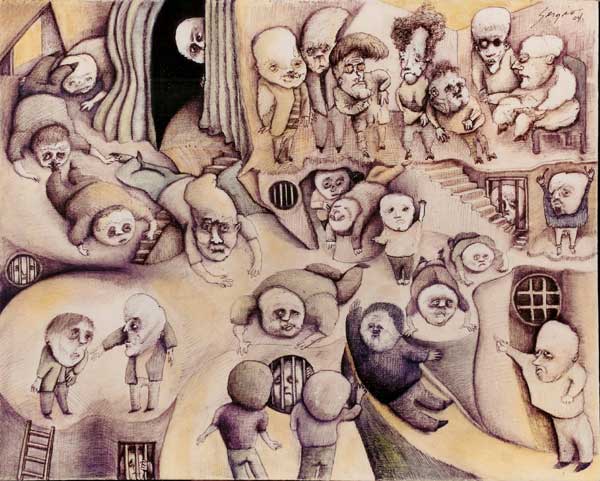 Tinta y acuarela s/lienzo