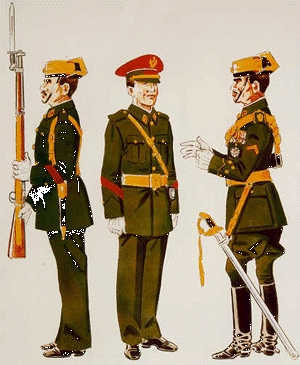 uso del pantalón largo para paseo; en 1958 se suprimió la bota alta, el calzón breeche y el ceñidor de cuero, aunque La Legión continúa
